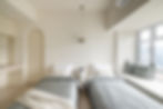 小孩房設計簡約清新,採用柔和的白色與灰色作為主色調,營造出一個平靜舒適的氛圍。雙人床排列整齊,簡單的床具設計讓房間顯得寬敞明亮。靠窗設置了舒適的座椅位置,可以讓孩子在此閱讀或欣賞窗外景色。另一邊的書床設計簡單實用,整體風格保持簡潔大方,適合孩子成長時的多種需求。