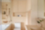 飯廳採用簡潔、清新的現代風格設計,以柔和的白色和淺木色作為主調,營造出溫暖且寧靜的用餐氛圍。掛在餐桌上方的三盞吊燈,增添了典雅的氛圍,燈光柔和且不刺眼。另外,開放式儲物架與展示櫃完美結合,不但提供了足夠的收納空間,還增添了整體的裝飾感。窗邊的自然光線充足,令整個空間更加明亮舒適,非常適合一家人在此享受美好時光。