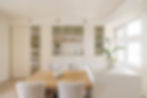 飯廳採用簡潔、清新的現代風格設計,以柔和的白色和淺木色作為主調,營造出溫暖且寧靜的用餐氛圍。掛在餐桌上方的三盞吊燈,增添了典雅的氛圍,燈光柔和且不刺眼。另外,開放式儲物架與展示櫃完美結合,不但提供了足夠的收納空間,還增添了整體的裝飾感。窗邊的自然光線充足,令整個空間更加明亮舒適,非常適合一家人在此享受美好時光。